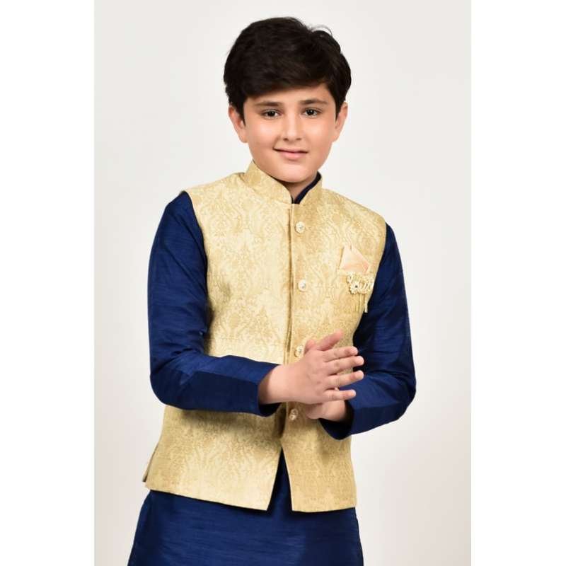 Gold Brocade Formal Kids Wear Waistcoat