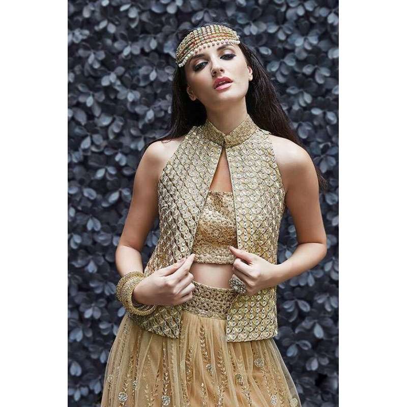 Golden Bridal Lehenga Indian Traditional Wedding Dress