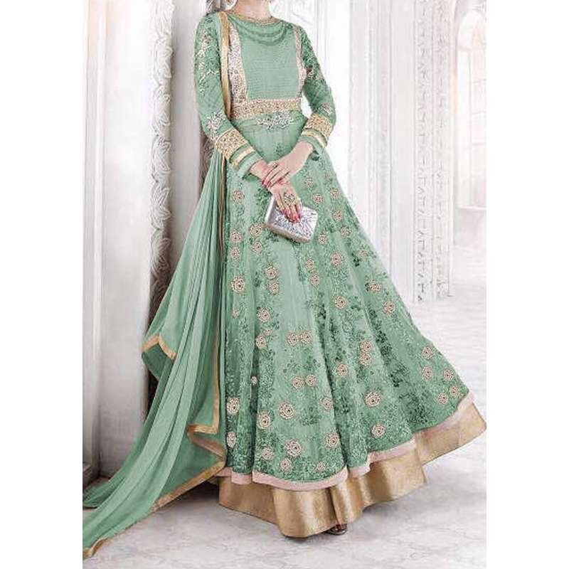 GREEN GLOSSY SAPPHIRE MAXI WEDDING ANARKALI SUIT