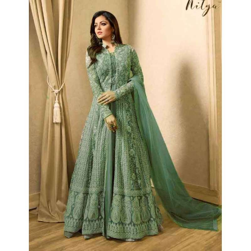 A Gorgeous New Georgette/Net Semi stitched dress with thread embroidery, zari work and stone work.
