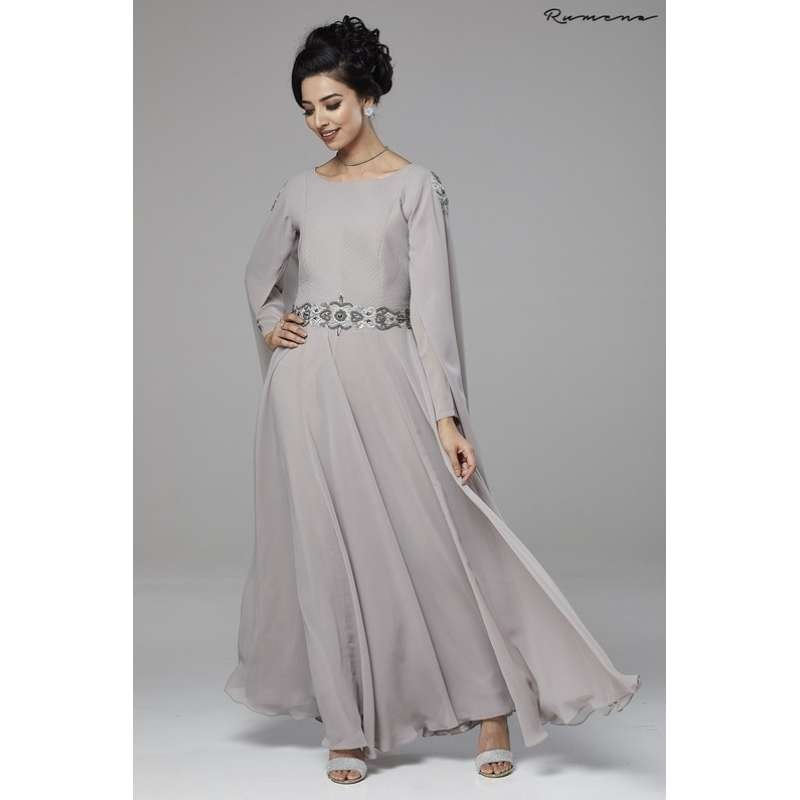 Grey Cape Dress Designer Maxi Gown