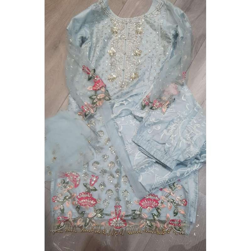 Blue Embellished Net Dress Indian Designer Palazzo Suit