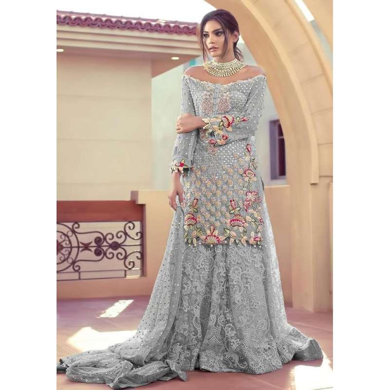 Grey Embellished Net Dress Indian Designer Palazzo Suit