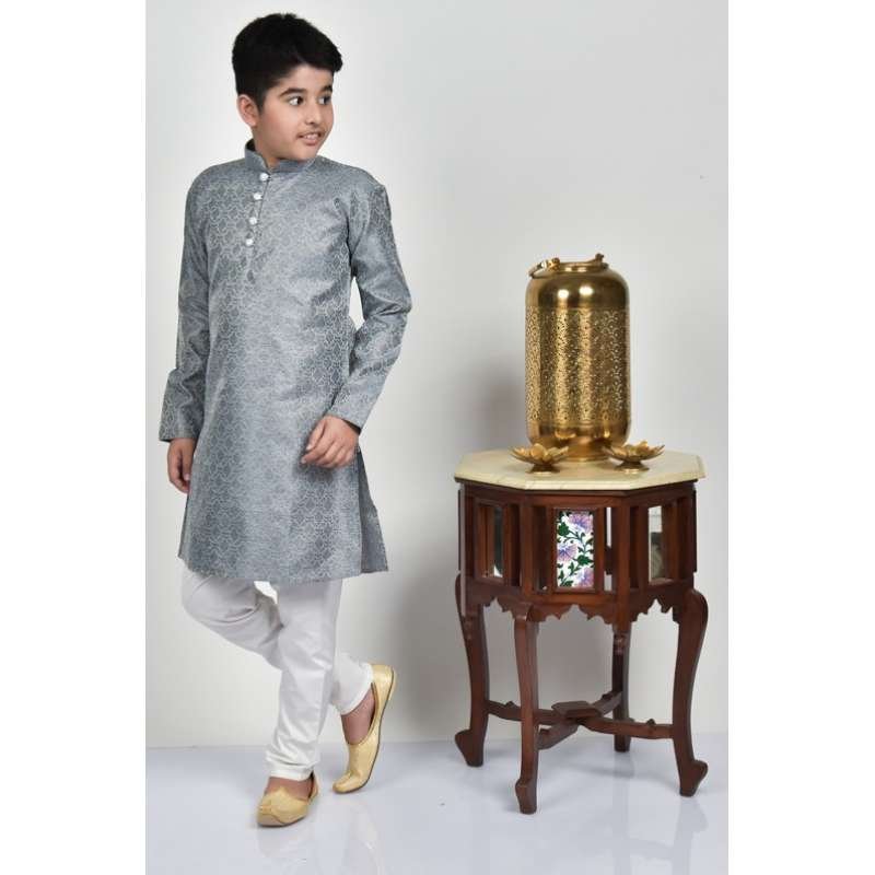 Grey Embroidered Designer Party Wear Boys Kurta Pajama