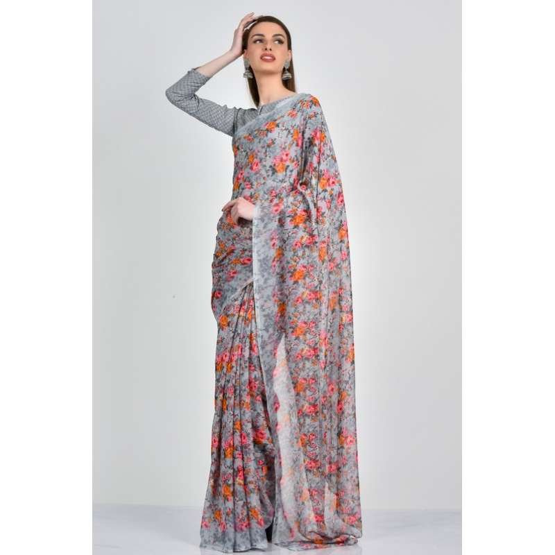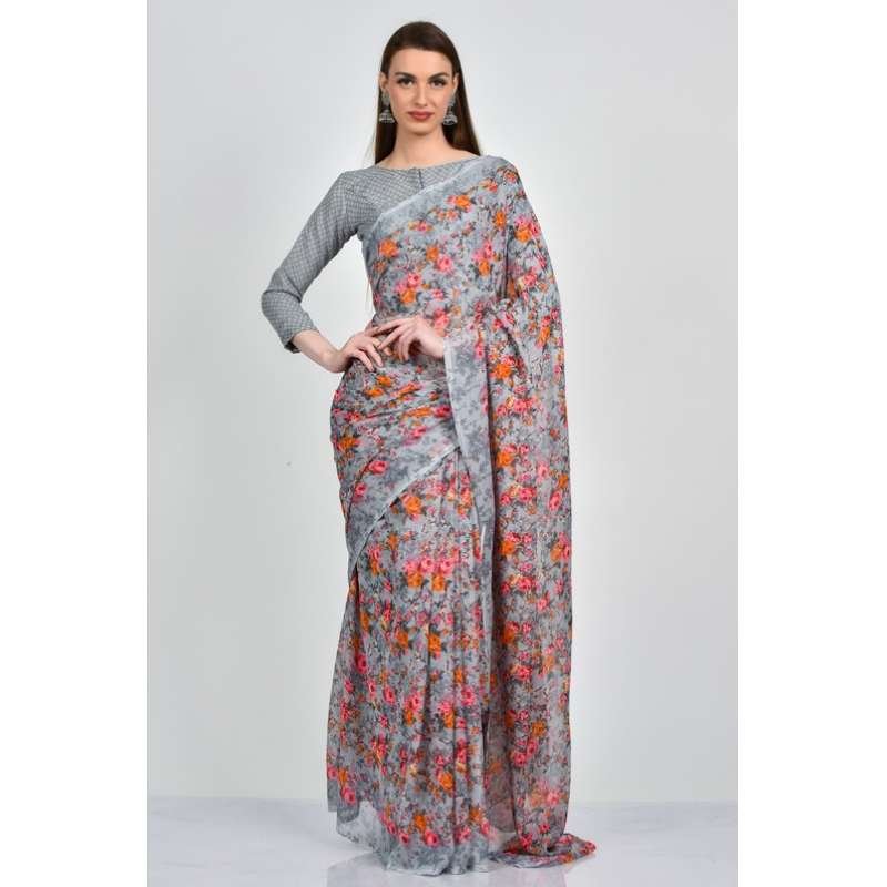 Grey Floral Printed Summer Saree