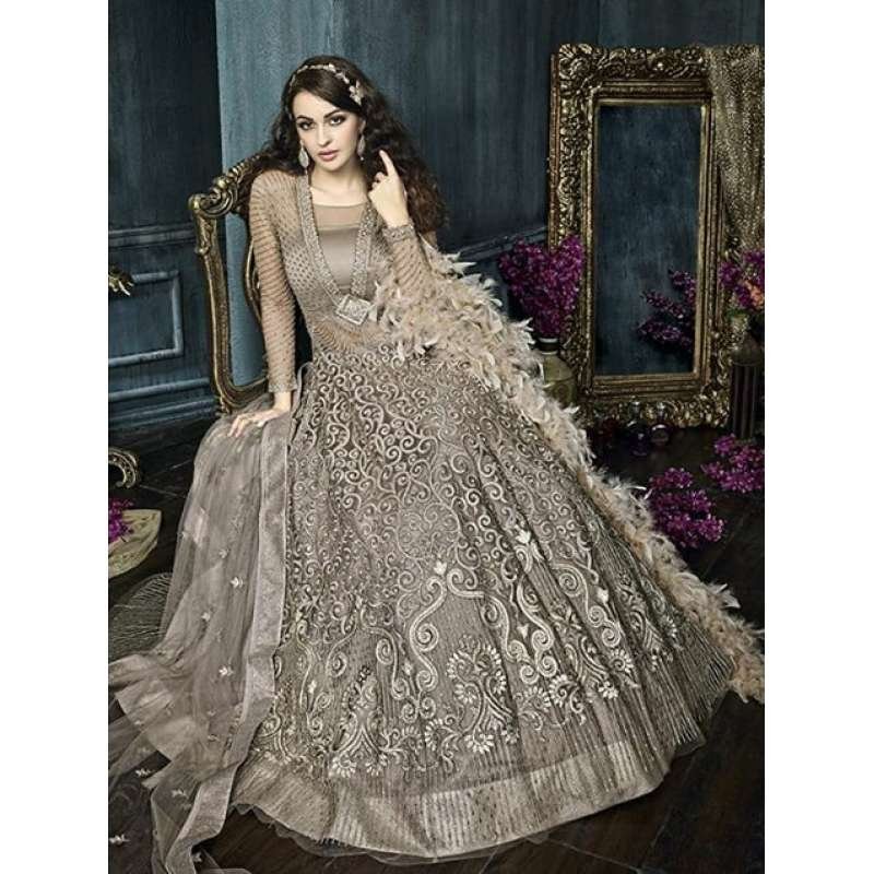 Grey Heavy Indian Anarkali Suit Wedding Party Gown