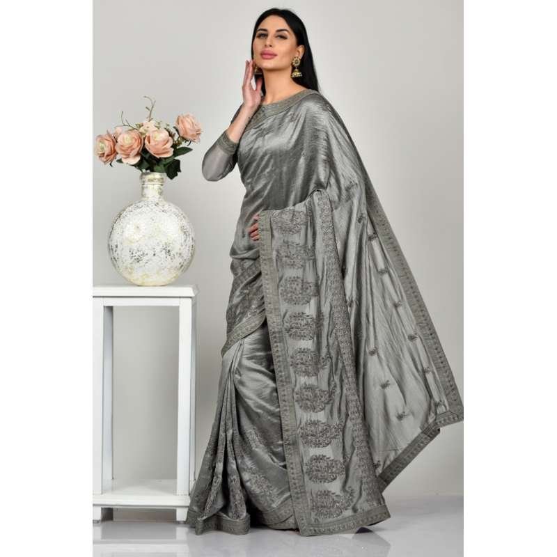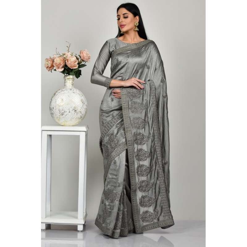 Grey Indian Ethnic Party Saree