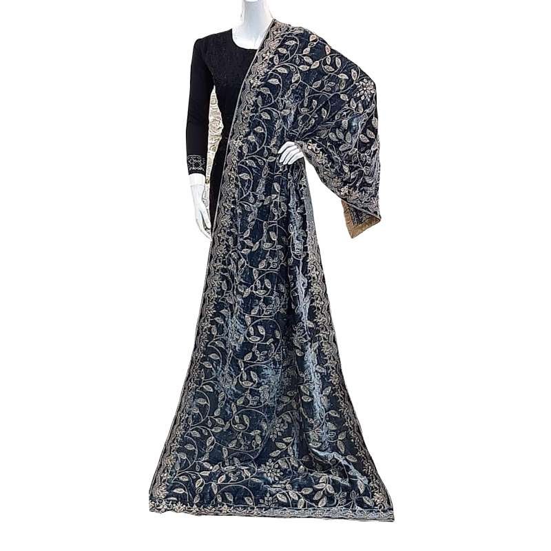 Grey Motif Embroidered Velvet Shawl