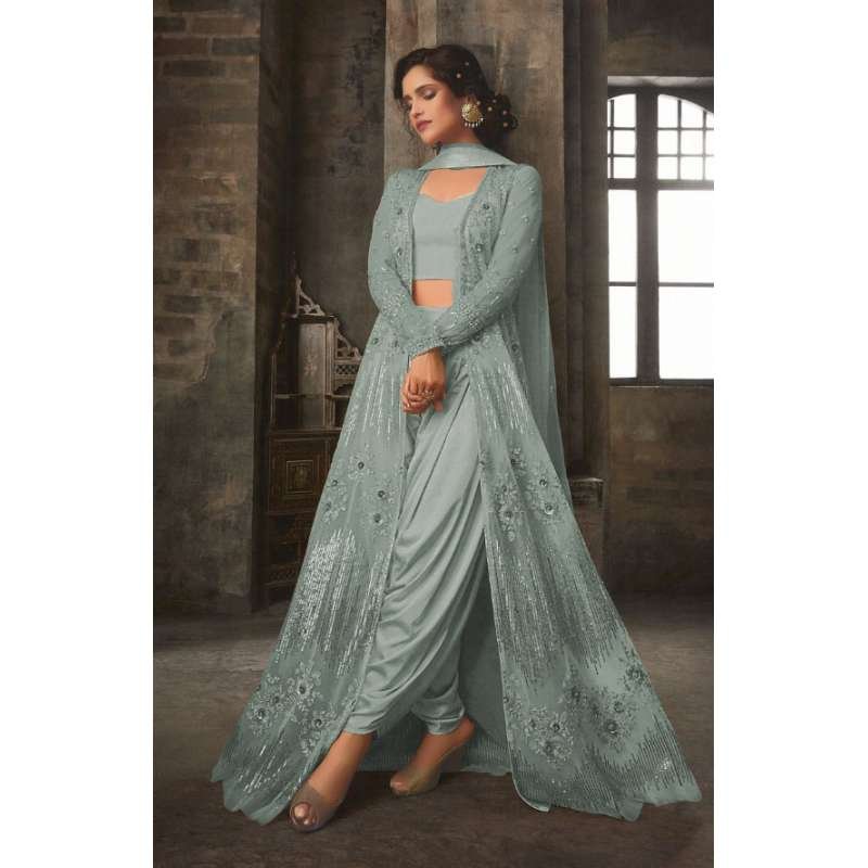 Grey Sequin Party Gown Indian Designer Wedding Suit