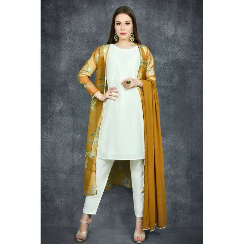 Cream Dress Mustard Floral Jacket Suit Readymade