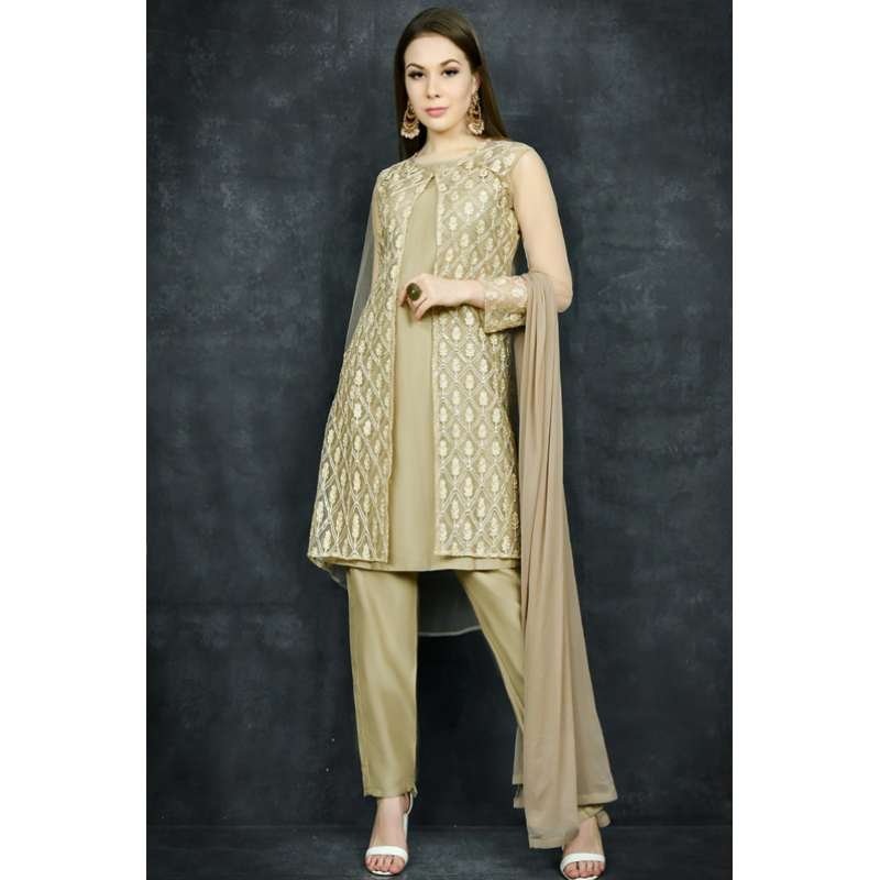 Gold Jacket Style Desi Readymade Suit