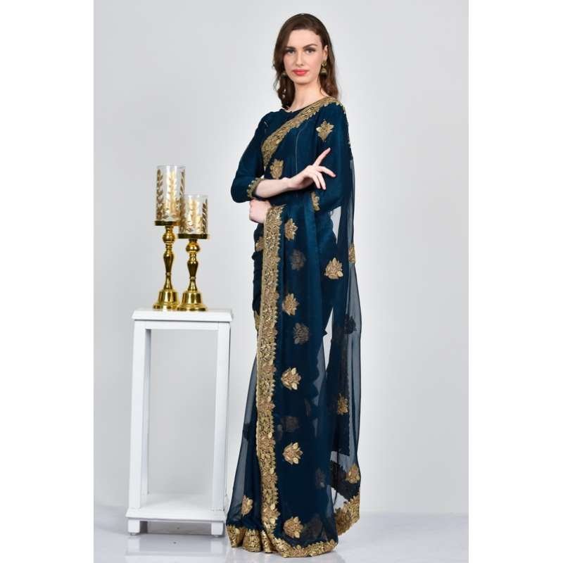 Peacock Blue Pakistani Designer Evening Saree