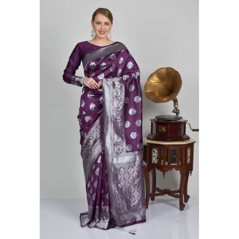 This beautiful banarsi saree for festival season. This fabric is a specialty of the Banaras. Banarsi fabric with banarsi style vibrant pallu with silver border.