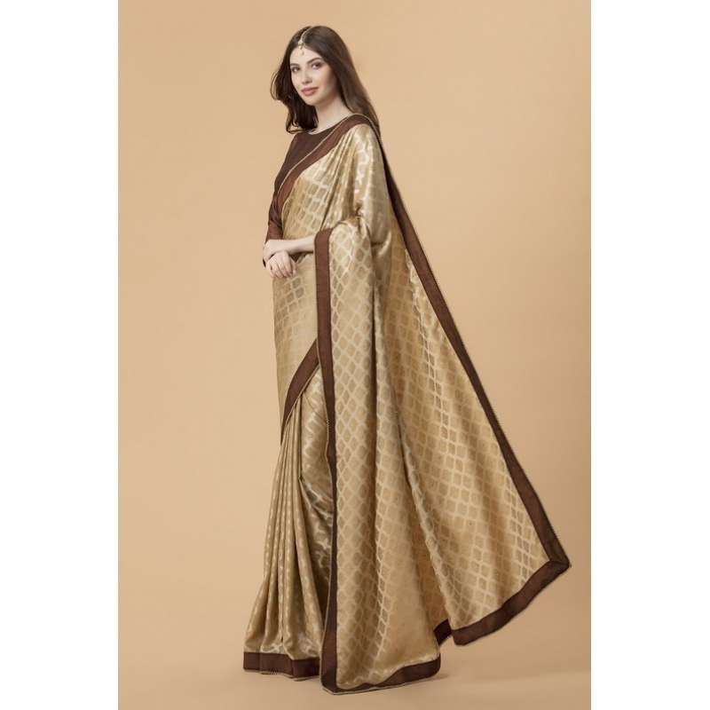 - Banarsi silk beige colour saree in jacquard fabric