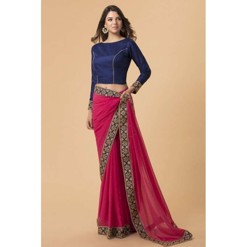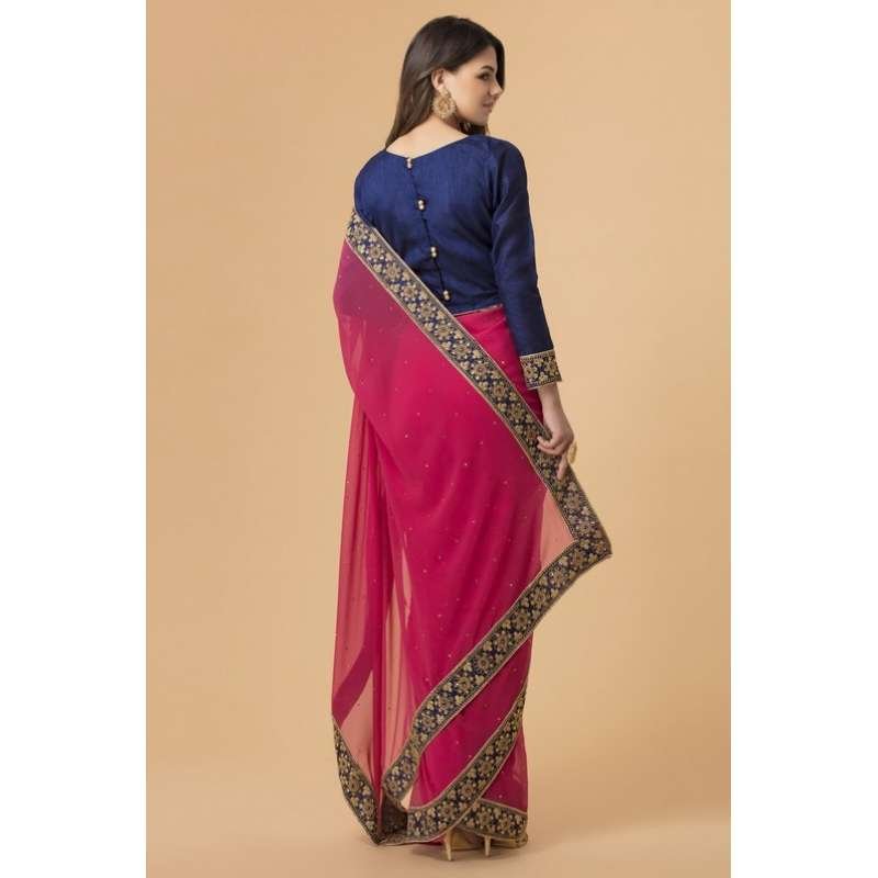 ZACS-716 RANI PINK AND NAVY BLUE BLOUSE BOLLYWOOD STYLE READY MADE SAREE