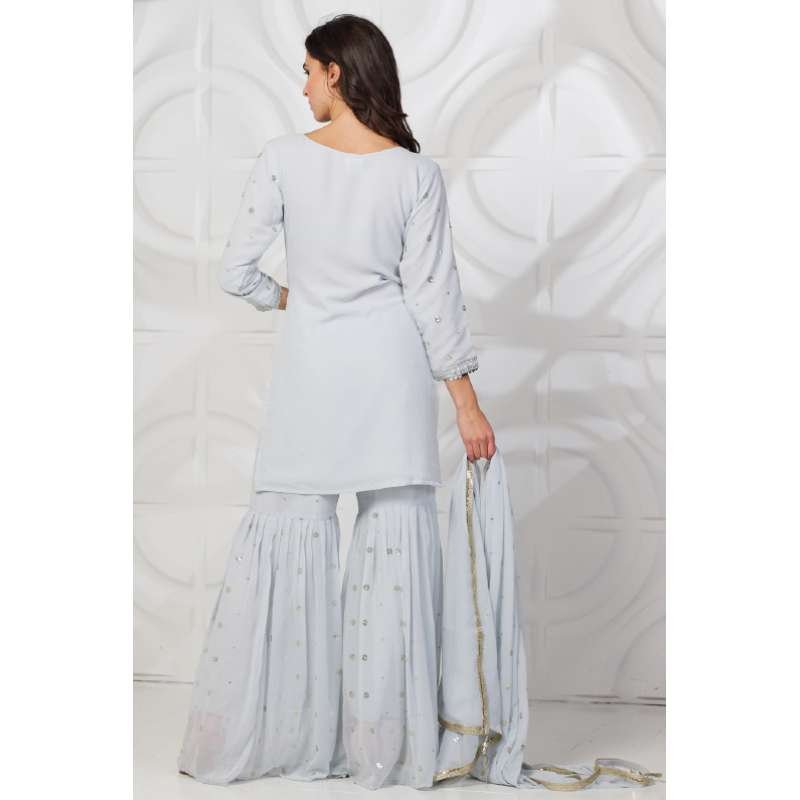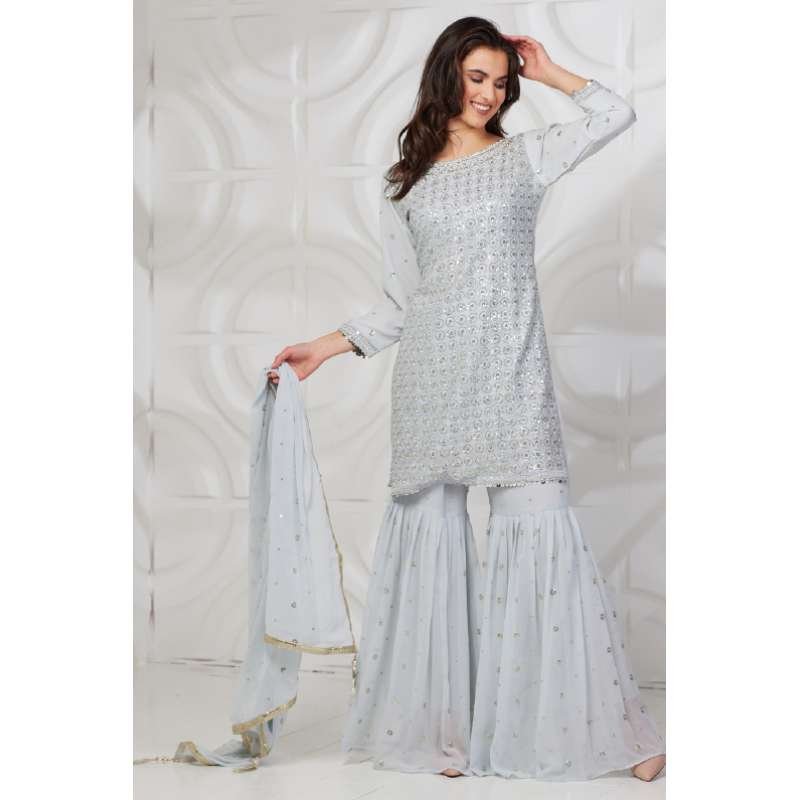 Light Grey Asian Wedding Sequin Gharara Suit