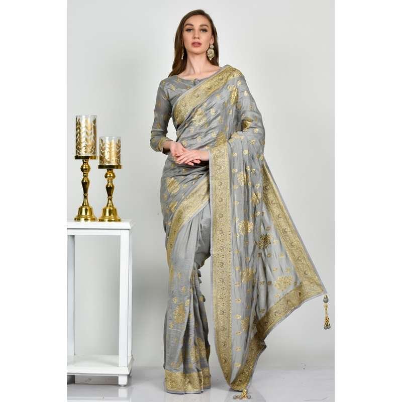Light Grey Indian Designer Fancy Saree