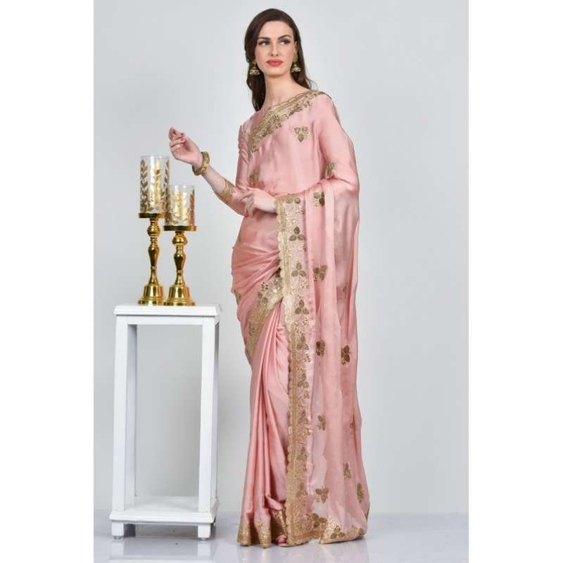 Light Pink Satin Chiffon Indian Party Saree
