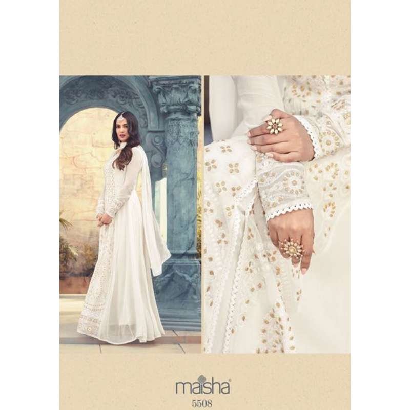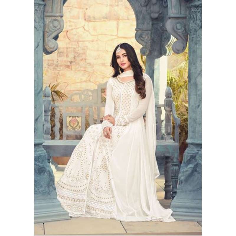 BRILLIANT WHITE INDIAN PAKISTANI PARTY WEAR ANARKALI DRESS