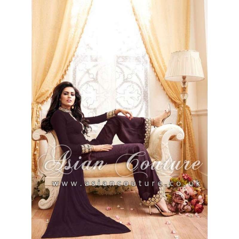 Magenta Indian Designer Suit Elegant Evening Dress UK