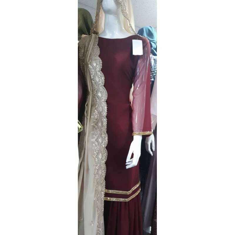 Maroon Evening Dress Indian Wedding Gharara Suit