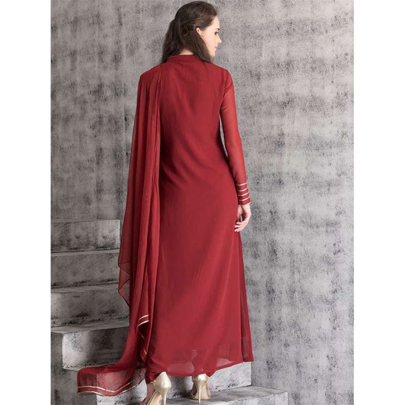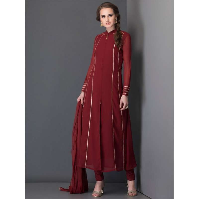 Maroon Long Line Dress Indian Party Suit