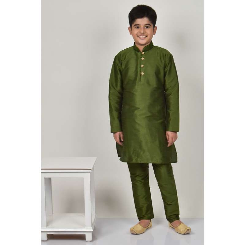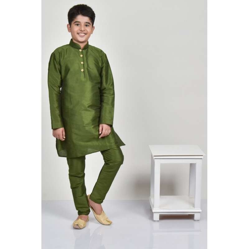 Mehndi Green Indian Boys Silk Kurta Pajama