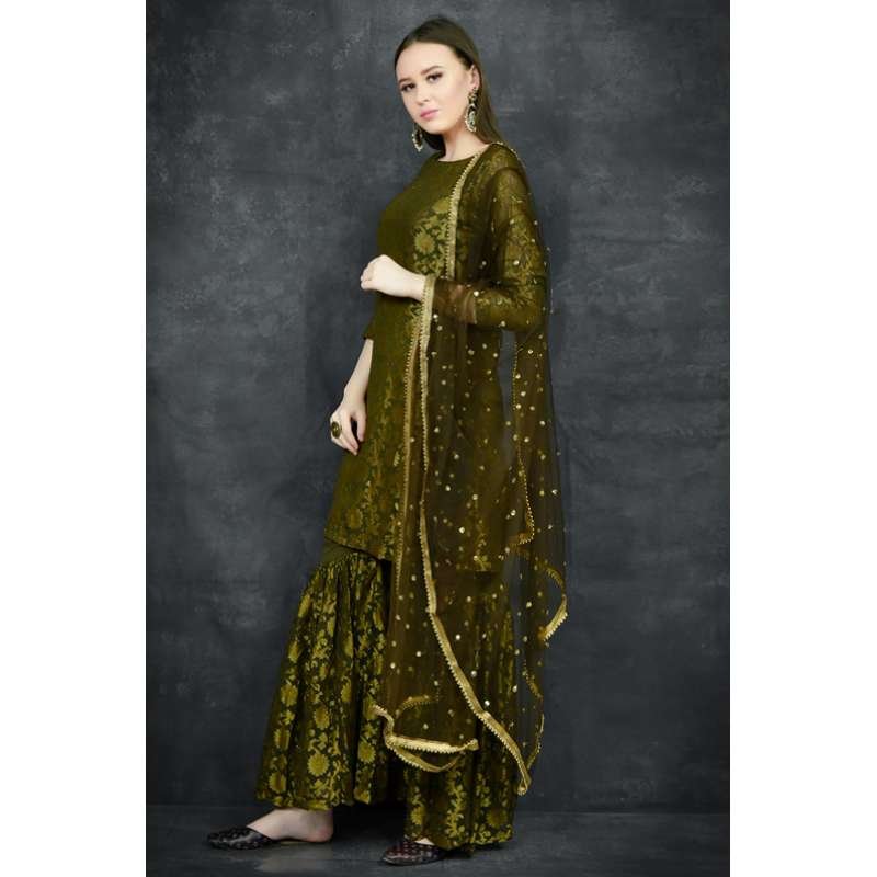 Mehndi Green Indian Wedding Designer Gharara