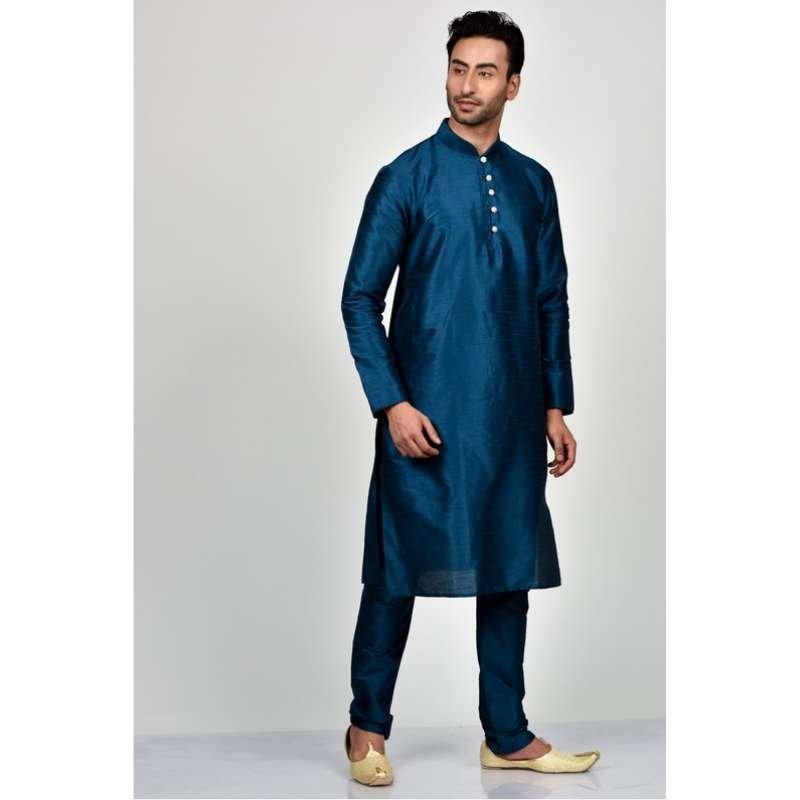 Teal Blue Silk Indian Designer Mens Kurta Pajama