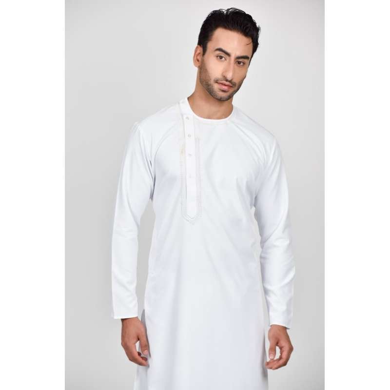 White Embroidered Kurta Pakistani Mens Festive Suit