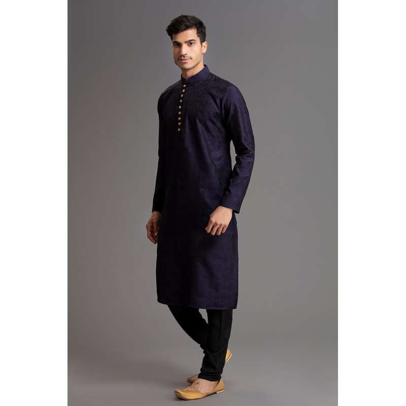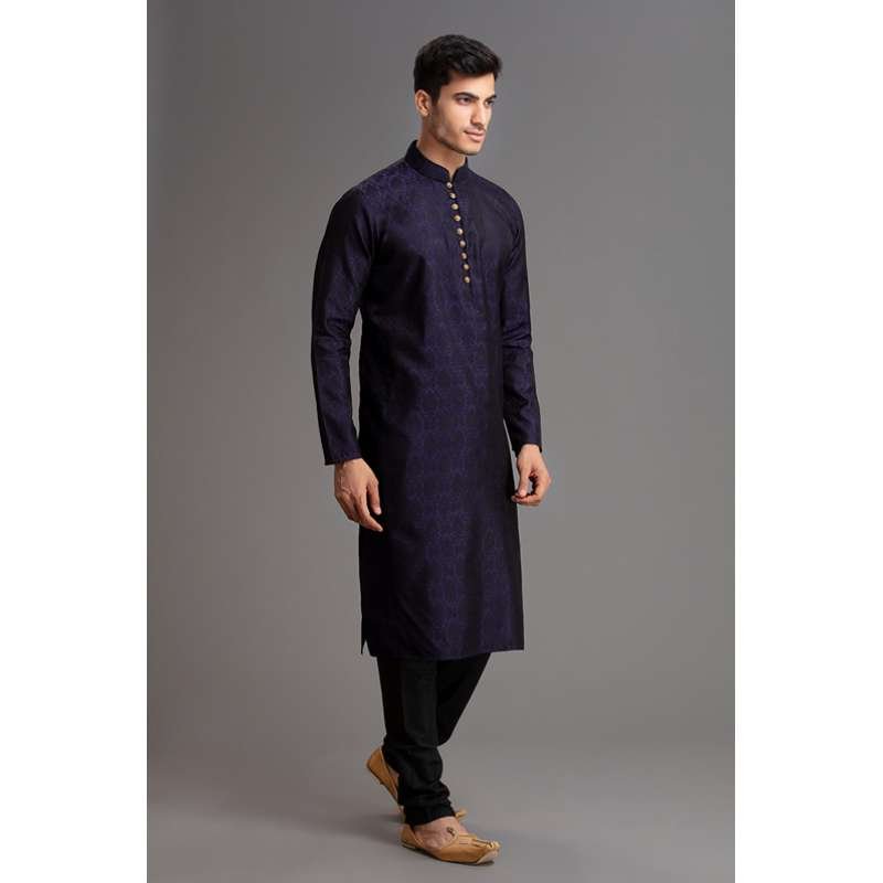 NAVY BLUE SELF PRINTED READYMADE KURTA PAJAMA SUIT