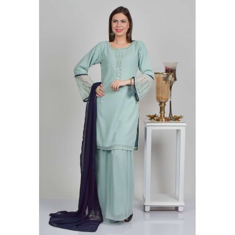 Mint Stitched Party Wear Ladies Gharara Suit