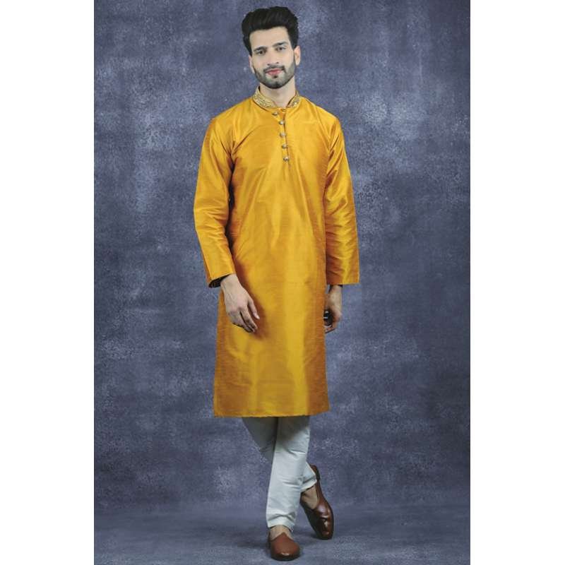 Mustard Indian Men Kurta Wedding Mayoun Kurta