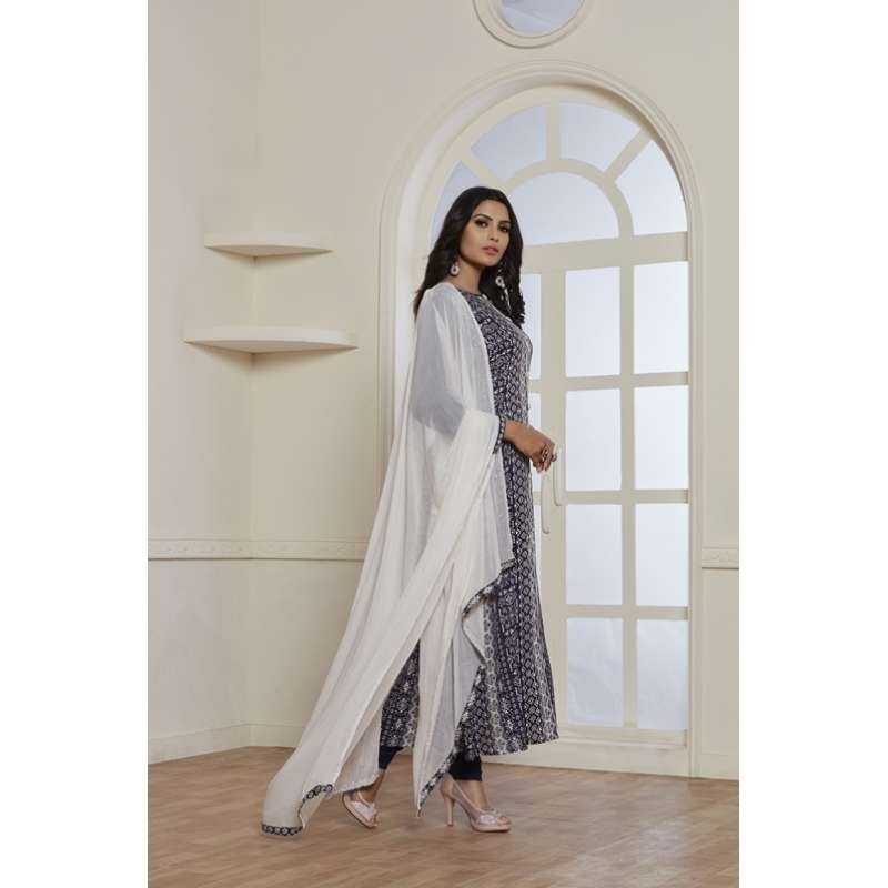 • Paired with crepe churidaar of base colour and chiffon dupatta in white colour