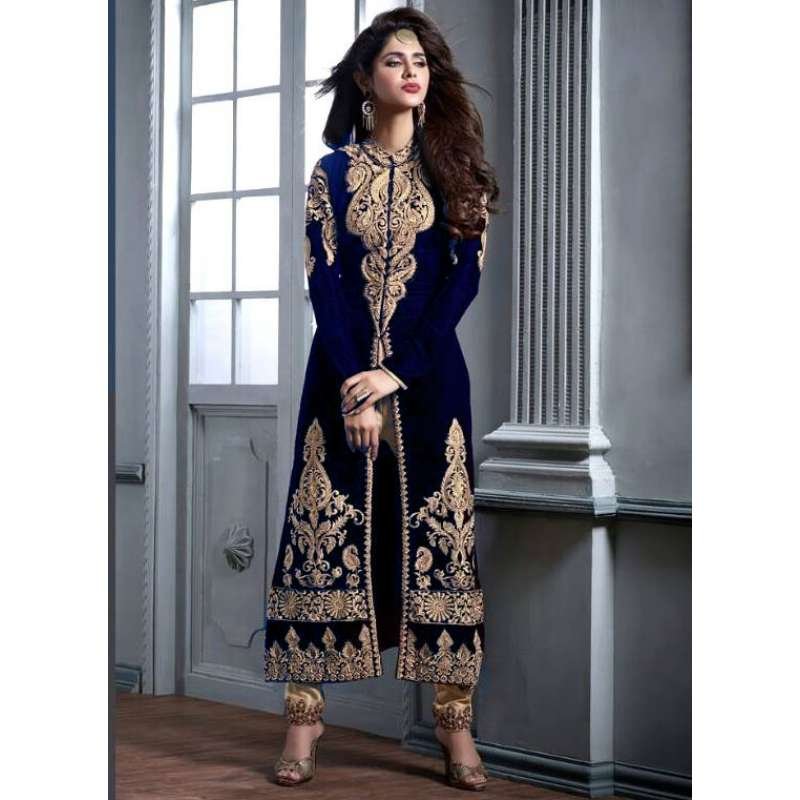 Navy Blue Premium Velvet Indian Party Wear Suit