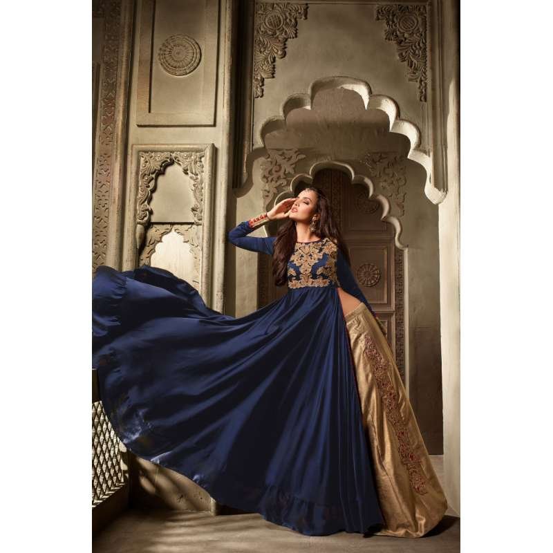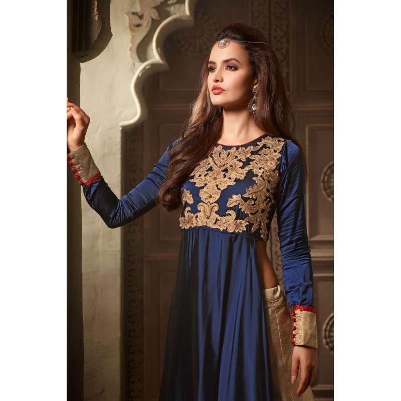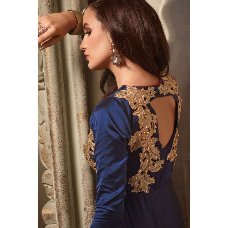 Navy Blue & Gold Indian Wedding Dress Embroidered Long Suit