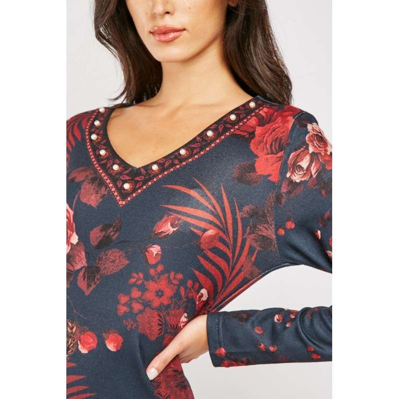 Tags: Navy Blue dress, Floral Printed Dress, V Neck Dress, black, floral printed, v neck dress, pearl embellished, mini dress, midi dress,