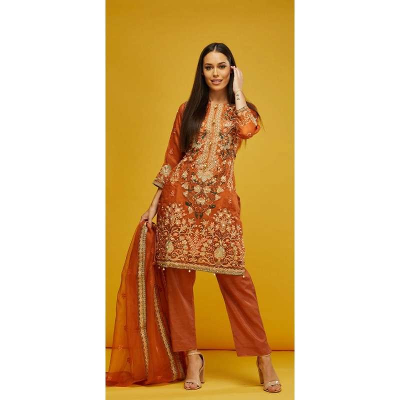 ORANGE PAKISTANI DESIGNERS READYMADE SALWAR SUIT