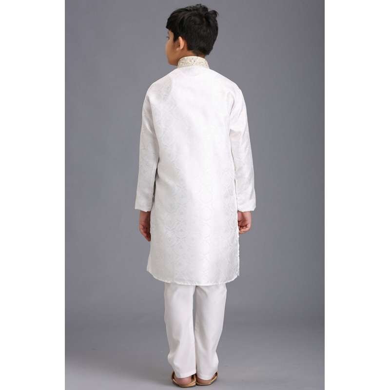 Off White & Gold Embroidered Boys Kurta Pajama Set