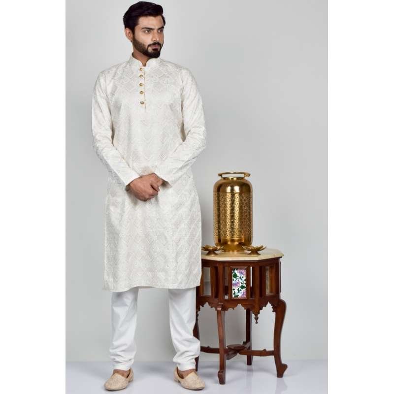 Off White Indian Designer Readymade Kurta Pajama For Men