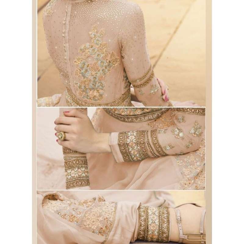 Touching Length. The Gown comes with Elegant Designer Embroideries on FRONT and SLEEVES suitable for this wedding and festive season. Good quality semi stitched frock style suit at a reasonable price