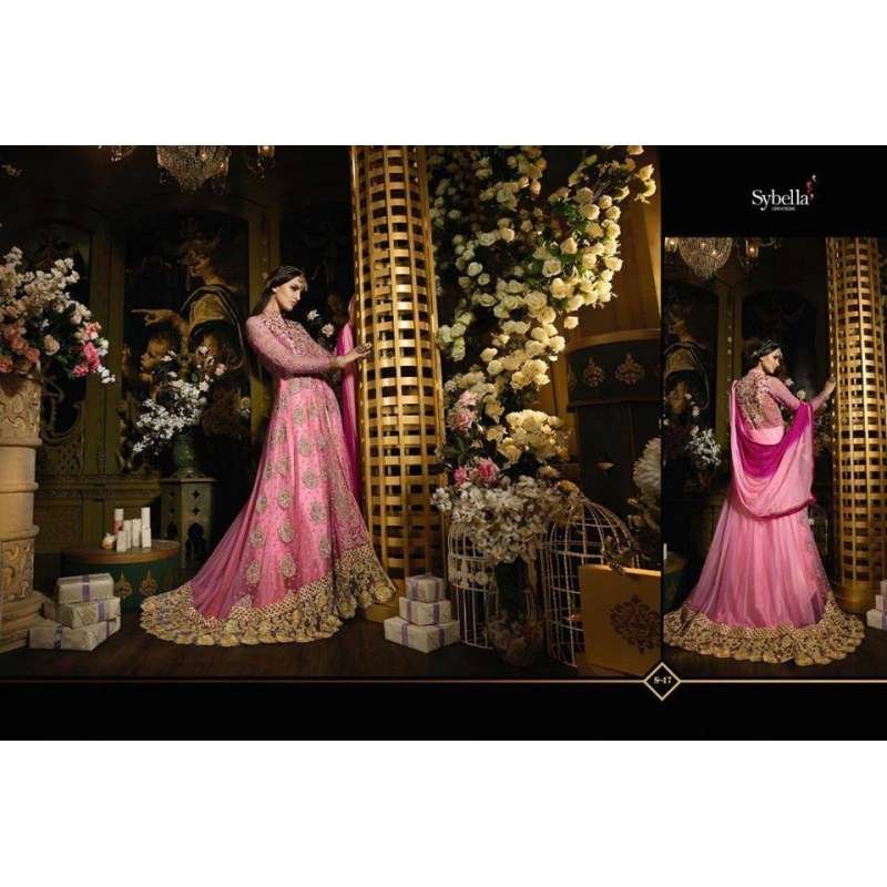 Pink Heavy Embroidered Long Anarkali Wedding Outfit