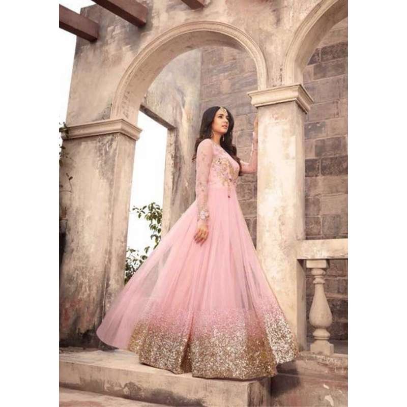 Pink Net Anarkali Gown Latest Indian Designer Wear