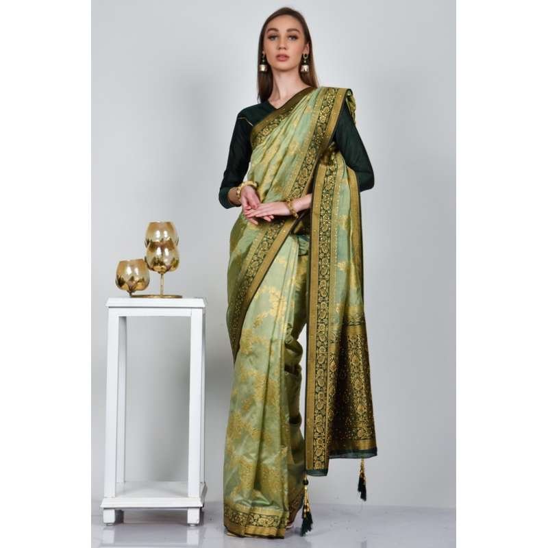 Pista Dark Green Indian Designer Banarasi Saree
