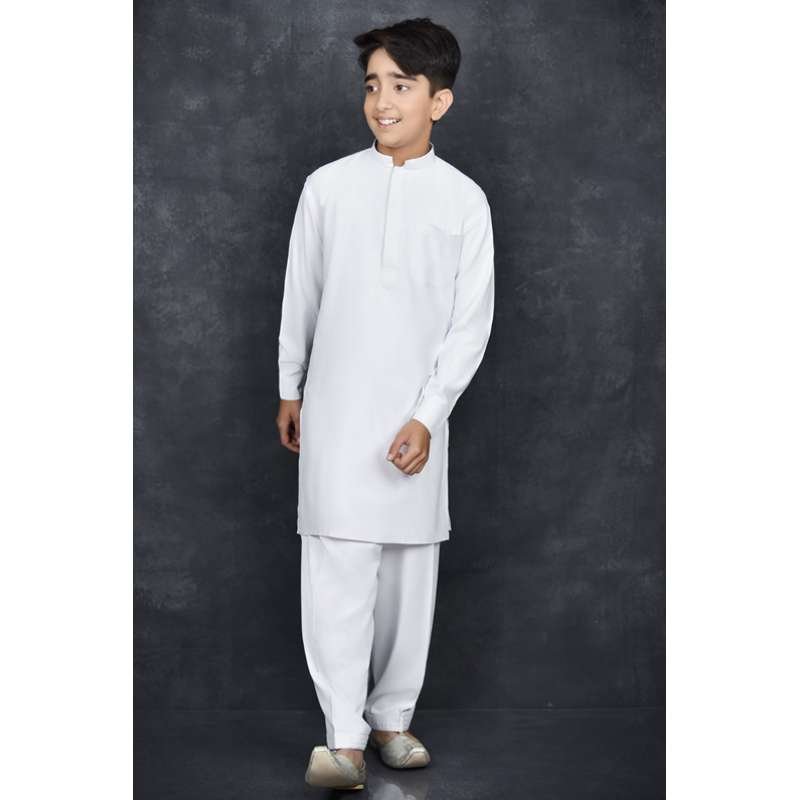 Plain White Boys Readymade Kurta Shalwar Suit