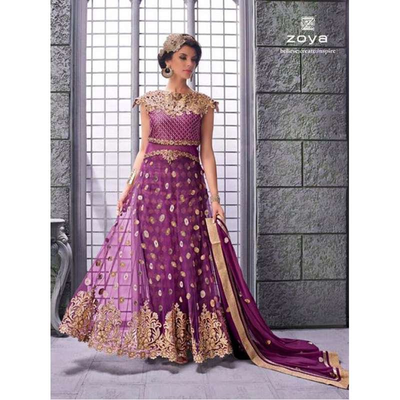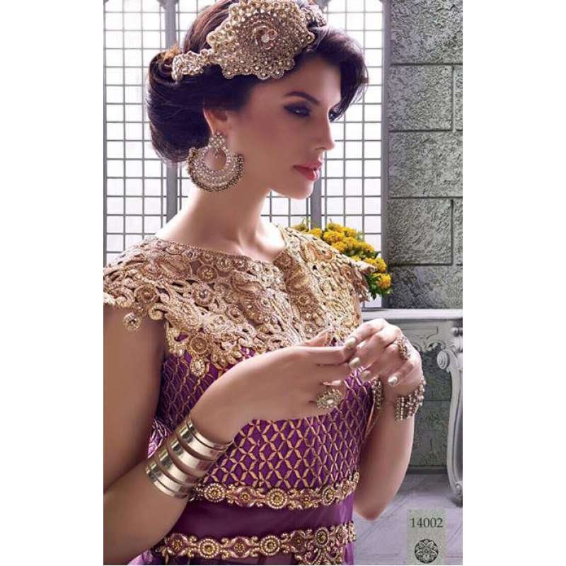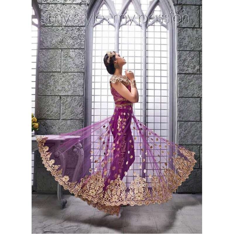 Purple Indian Party Dress Designer Embroidered Net Gown