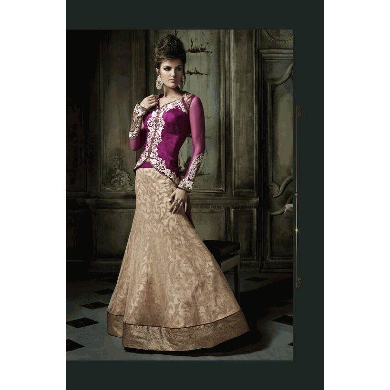 Purple & Brown Indian Desi Wedding Lehenga Dress
