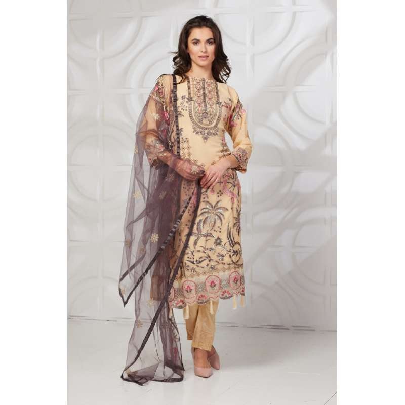 Beige Embroidered Formal Salwar Suit
