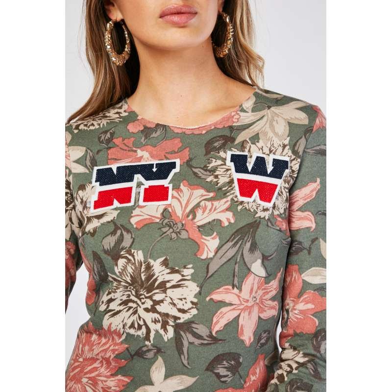 Tags: olive, green, printed, flowery, winter wear, mini dress, jersey knit dress,