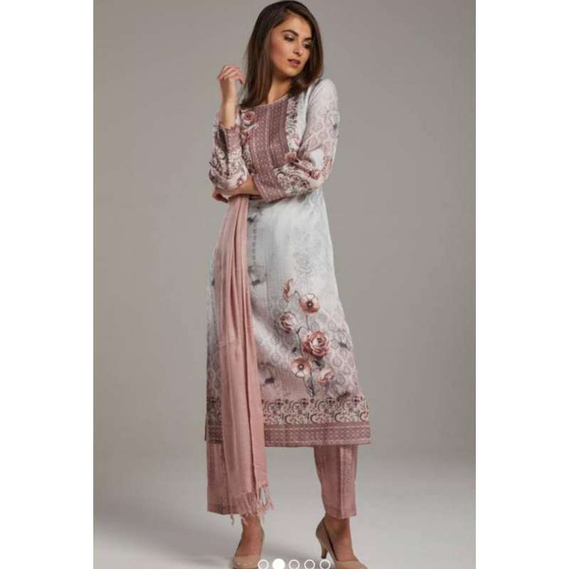 Luxury Rose Pink Dress Pakistani Printed Suit Warm fabric With intricate floral prints,